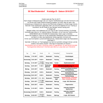In der Anlage steht der Vorbereitungsplan der 1. Mannschaft zum download bereit.