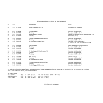 Wintervorbereitungsplan 1. Mannschaft