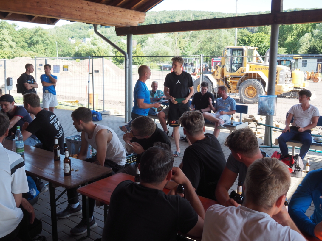 Im Anschluss an die Siegerehrung saßen die Mannschaften, Turnierhelfer und Schiedsrichter Rolf Schellberg bei Würstchen und Kaltgetränken zusammen. Schiedsrichter Schellberg gilt ein großes Lob, er pfiff alle drei Partien äußerst souverän.