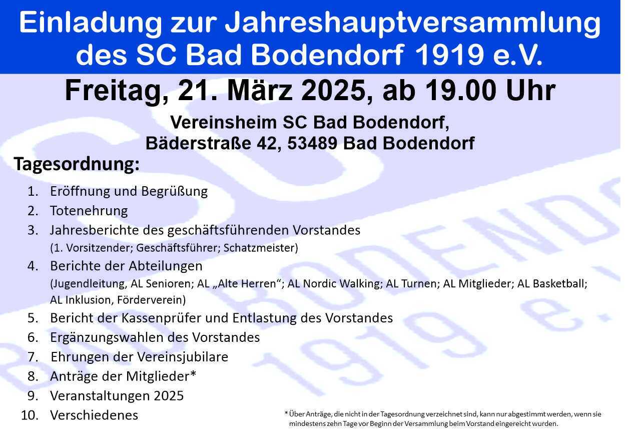 Sie möchten gerne Mitglied beim SC Bad Bodendorf 1919 e.V. werden? Kein Problem. Einfach auf den Link klicken und unter der Rubrik "Verein" finden Sie den Mitgliederantrag. Diesen dann downloaden, ausfüllen und per E-Mail an mitglieder@scbadbodendorf.de mailen oder einfach bei Ihrem Trainer/in, Betreuer/in, Abteilungsleiter/in abgeben.
