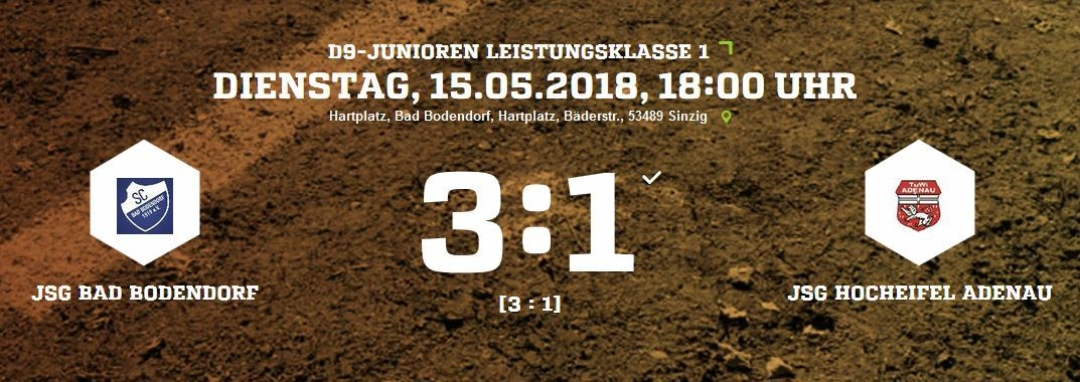 Das Spiel der A-Junioren der JSG Bad Bodendorf gegen die SG Heimersheim wurde vorverlegt. Statt um 13.00 Uhr am Sonntag (29.07.2018) findet das Spiel bereits um 11.30 Uhr auf dem Sportplatz in Bad Bodendorf statt. Grund der Verlegung sind die hochsommerlichen Temperaturen.