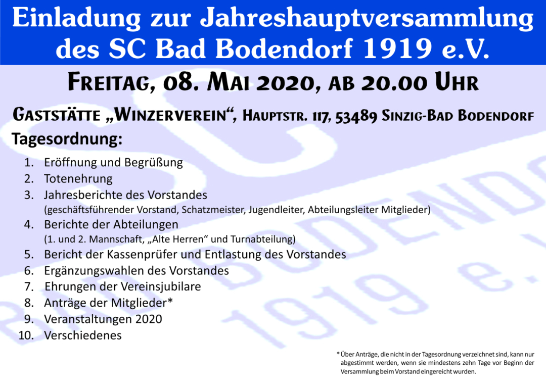 Jahreshauptversammlung des SC Bad Bodendorf 1919 e.V.