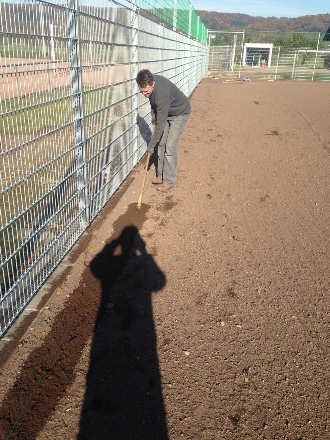 17.10.2015: Es ist geschafft, das Spielfeld ist plan gezogen und für die Einsaat vorbereitet.