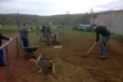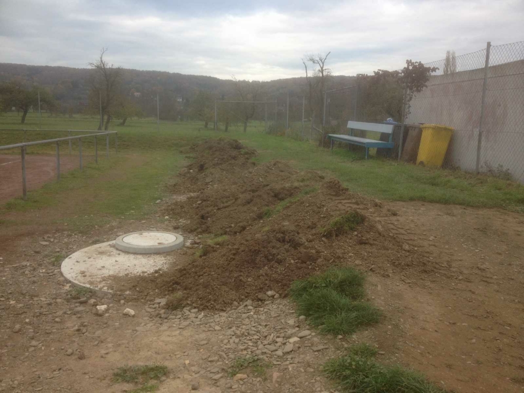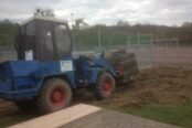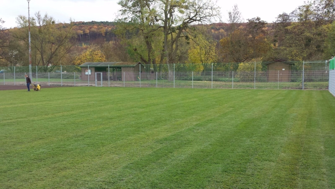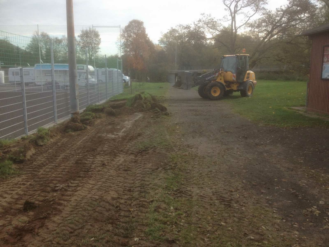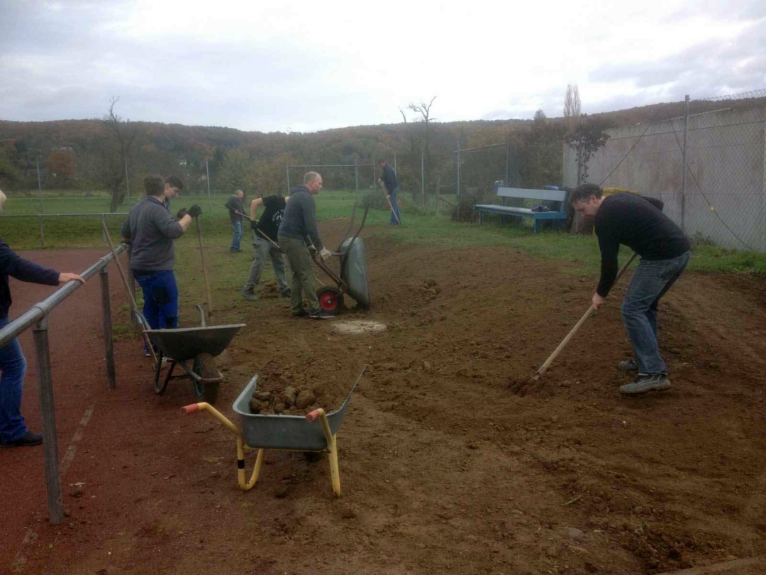 09.-12.11.2015: Städtische Bedienstete bearbeiten das Aussengelände um das Kleinspielfeld, d.h. Mutterboden wird entsprechend verteilt und Rasen eingesät.