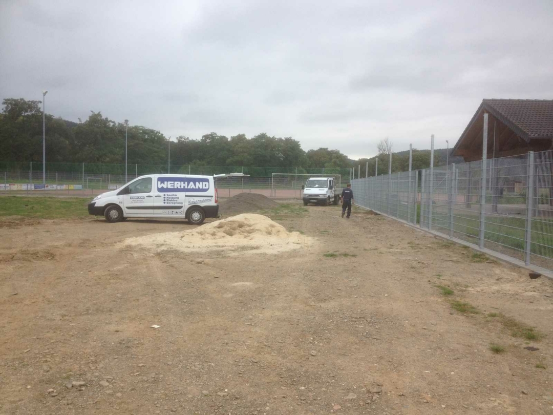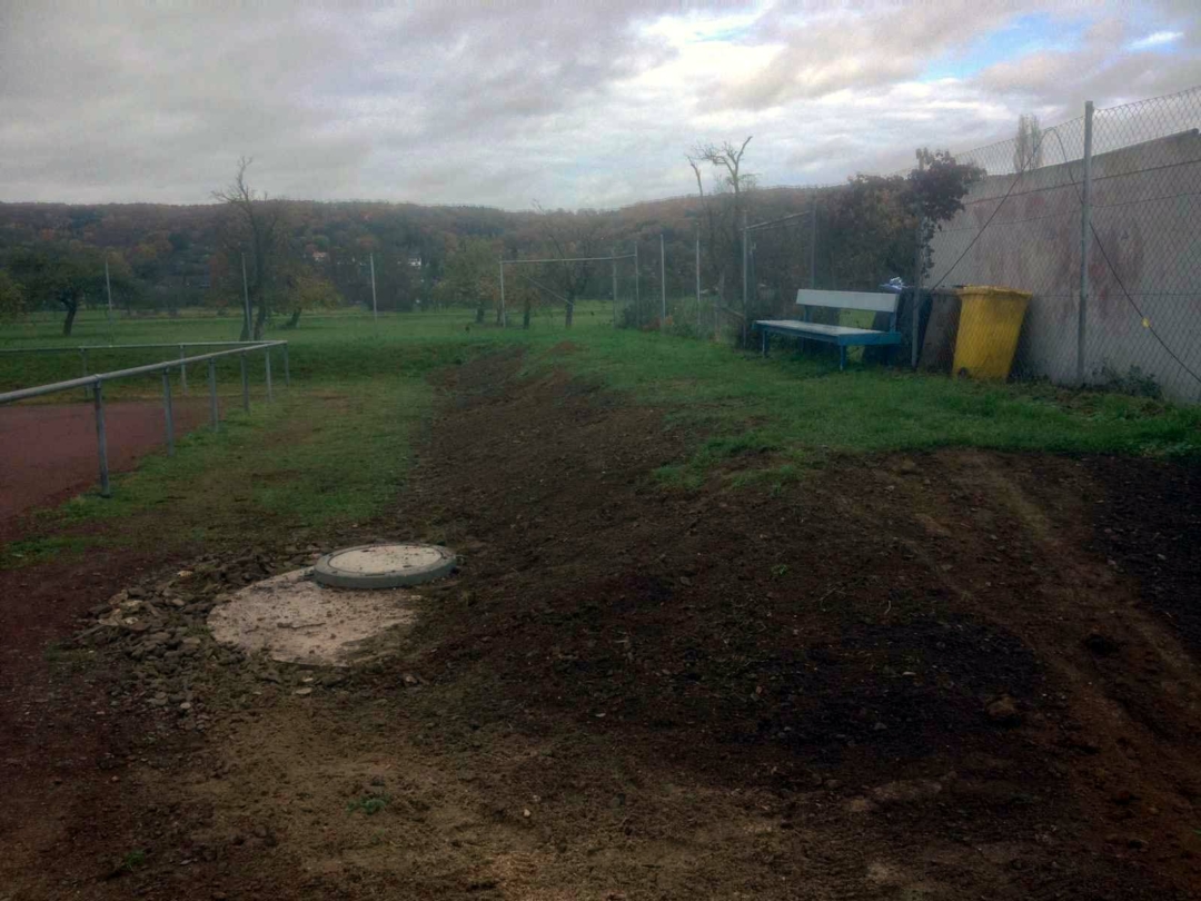 Stromkabel für einen geplanten, zweiten Flutlichtmast verlegt und