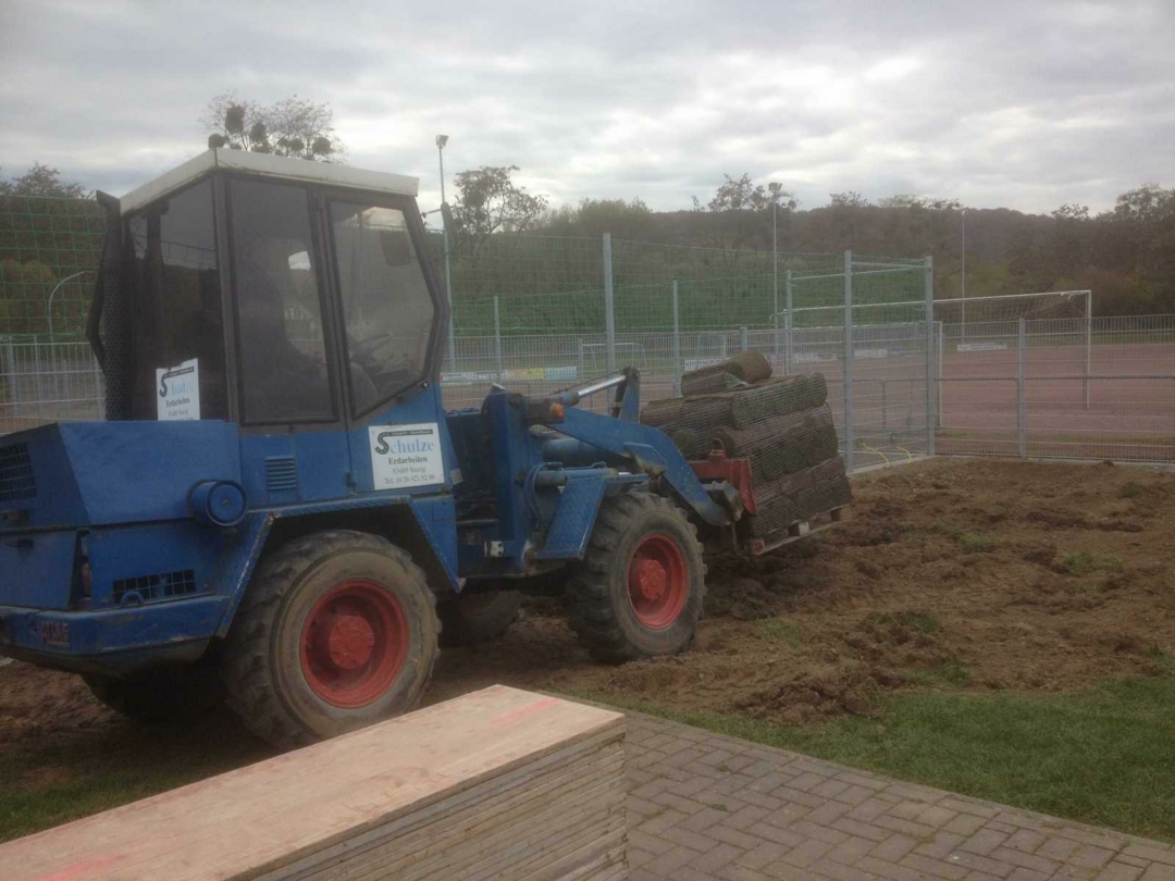 Sportplatzes wurde begonnen. Rainer Schulze hat begonnen, mit schwerem