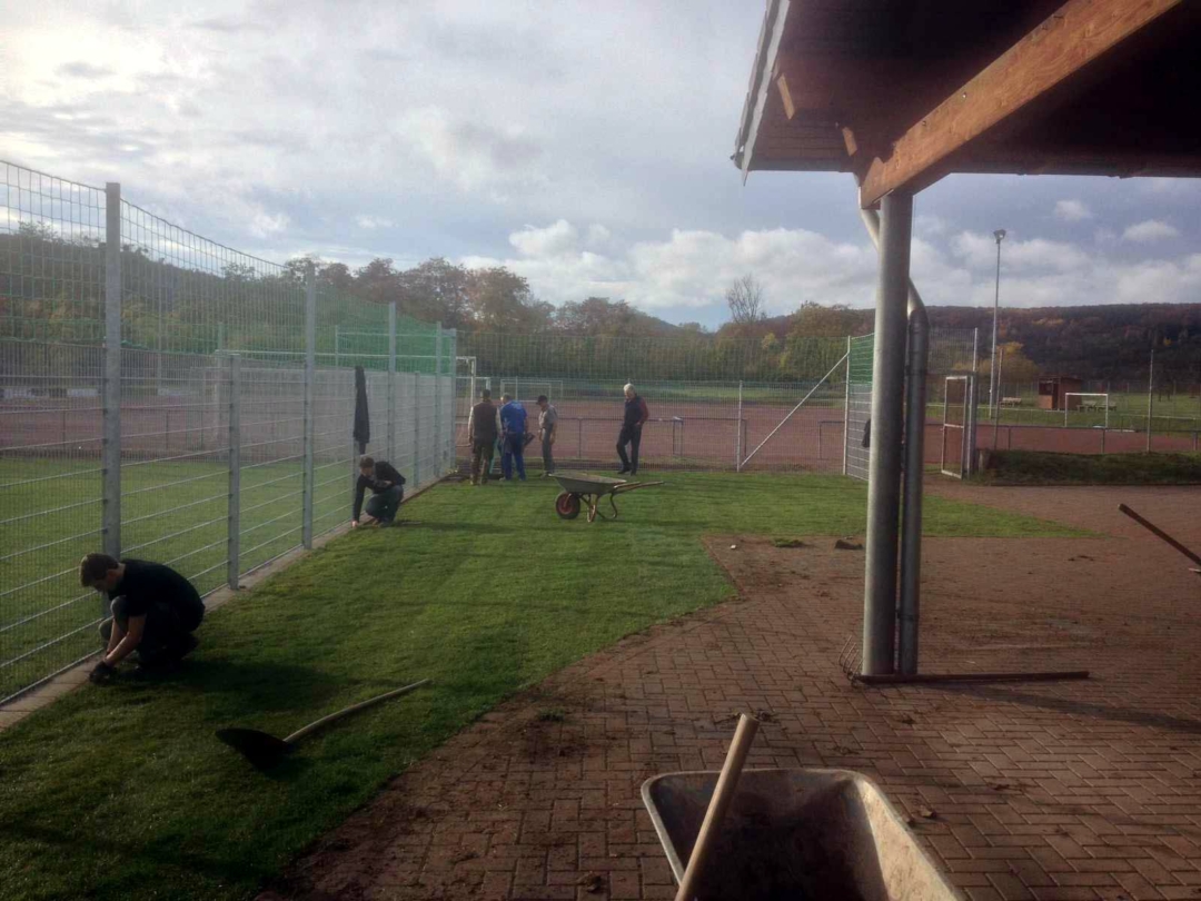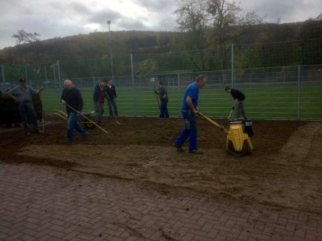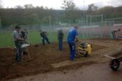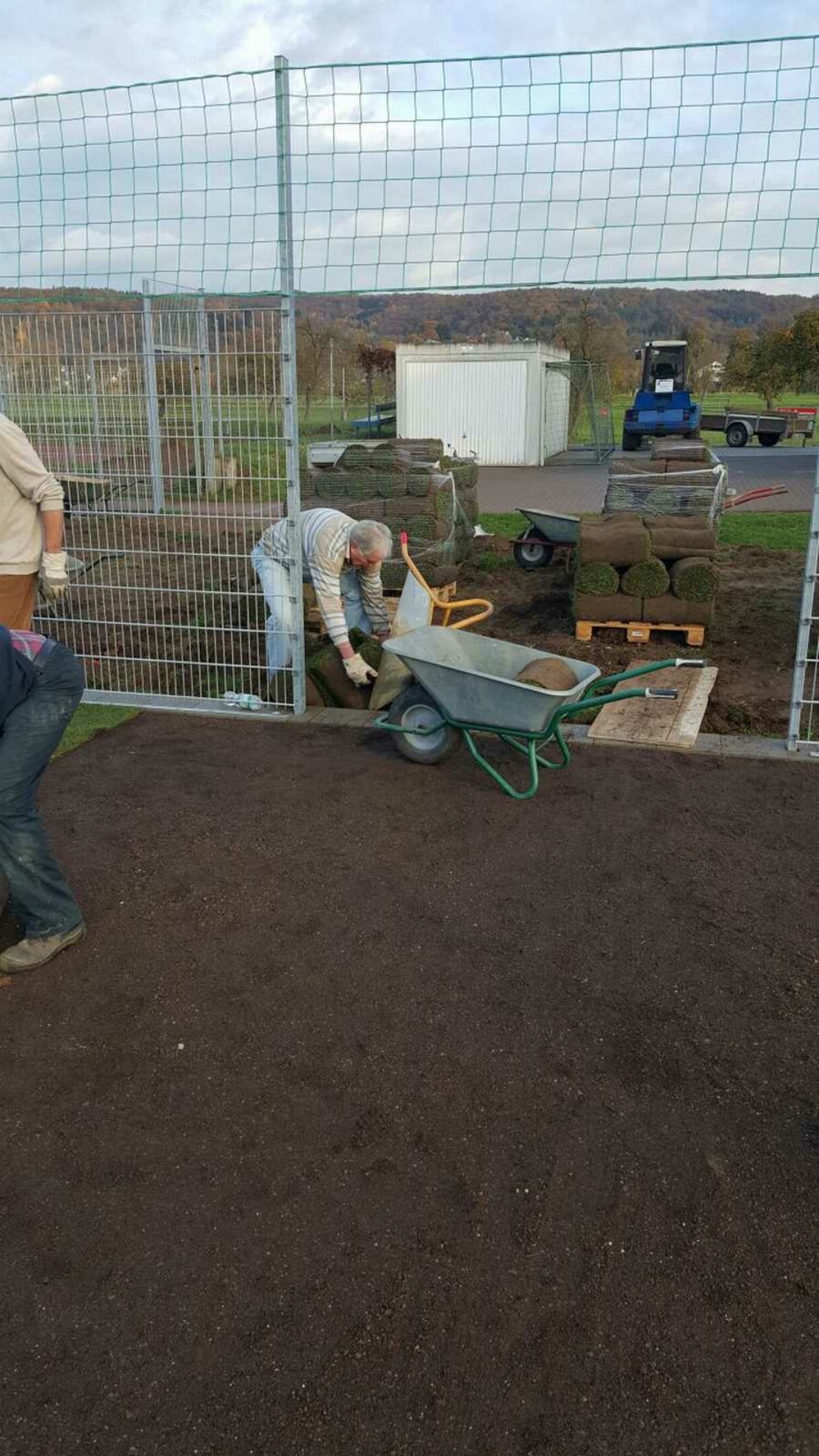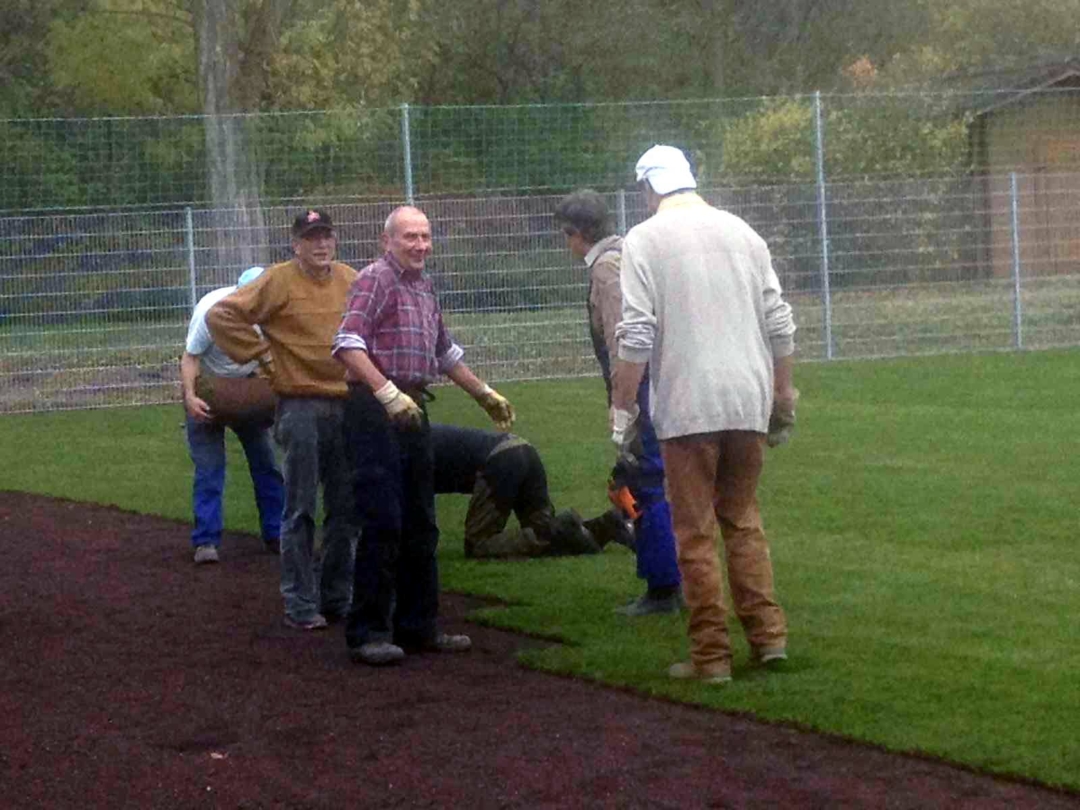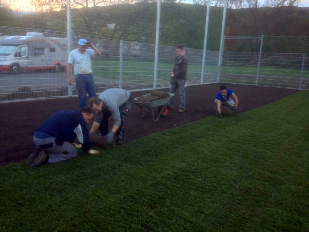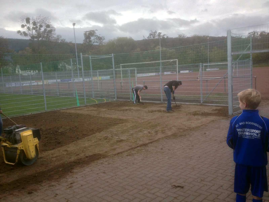 Arbeiten am Kleinspielfeld gehen in die Endphase. Heute wird mit vielen