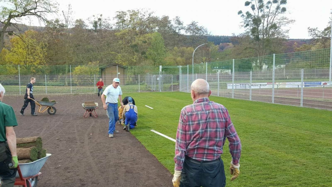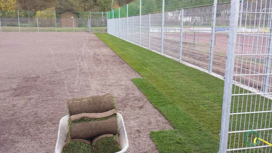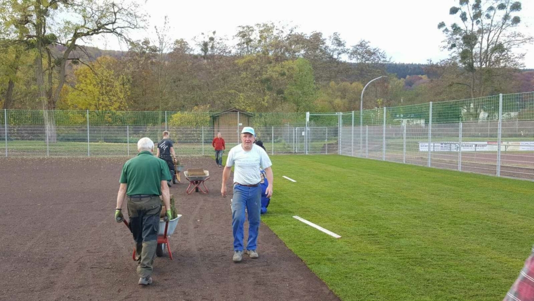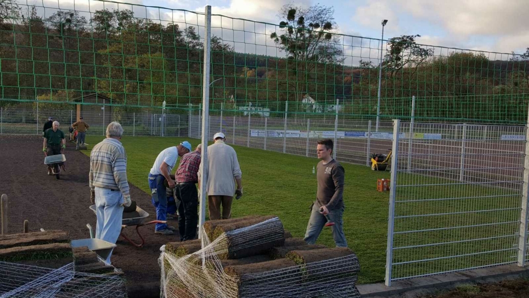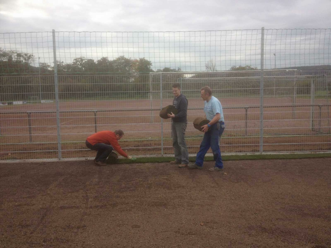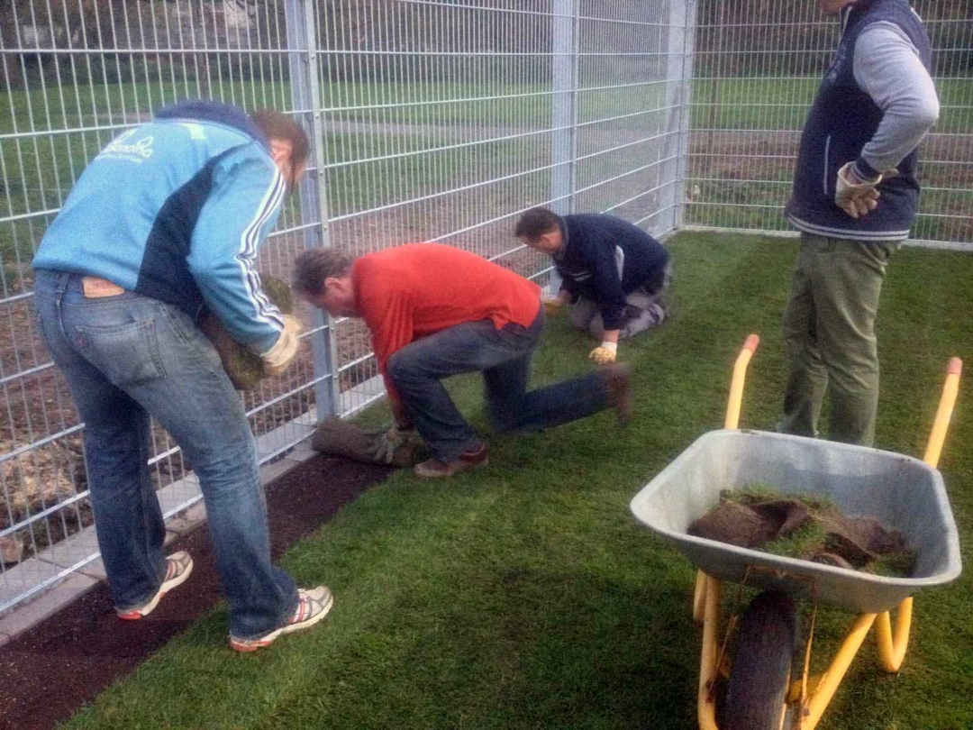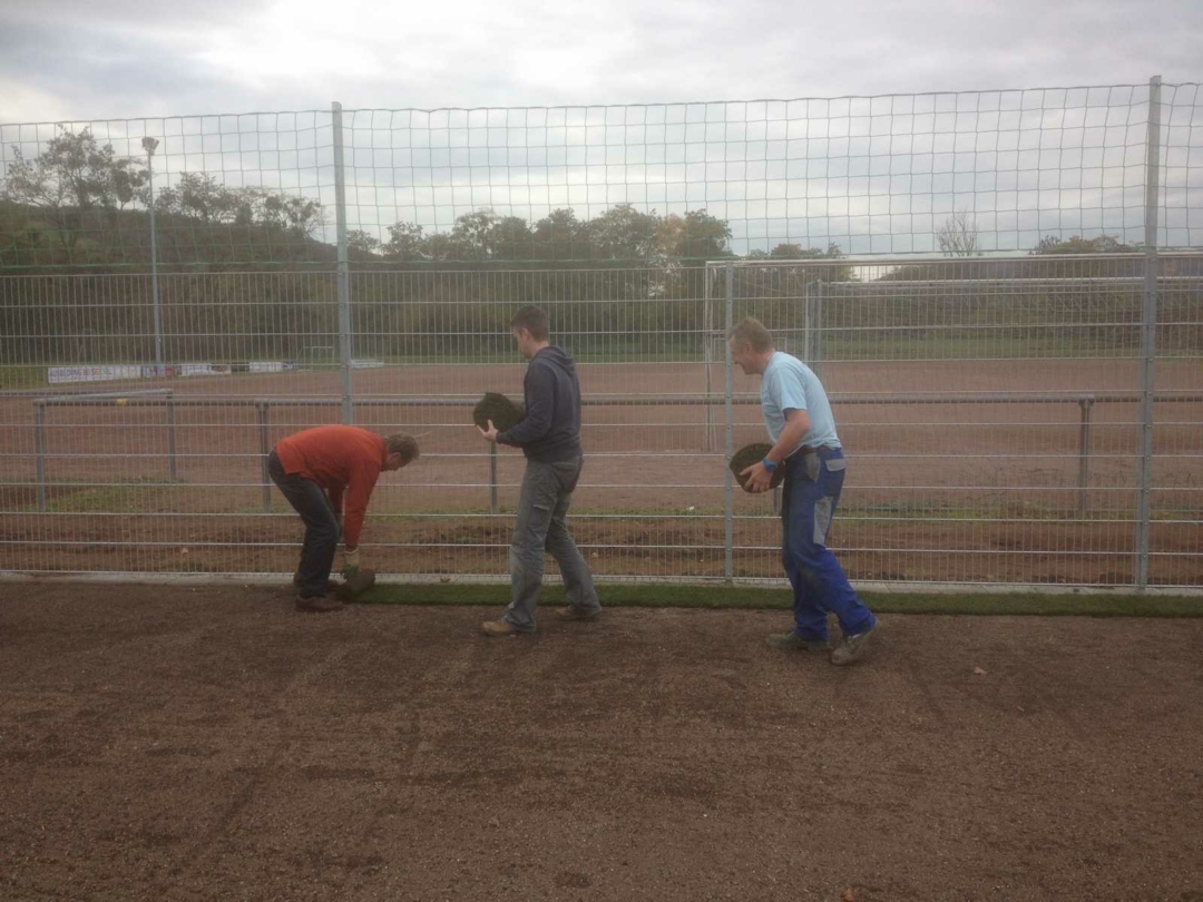 Arbeiten am Kleinspielfeld gehen in die Endphase. Heute wird mit vielen