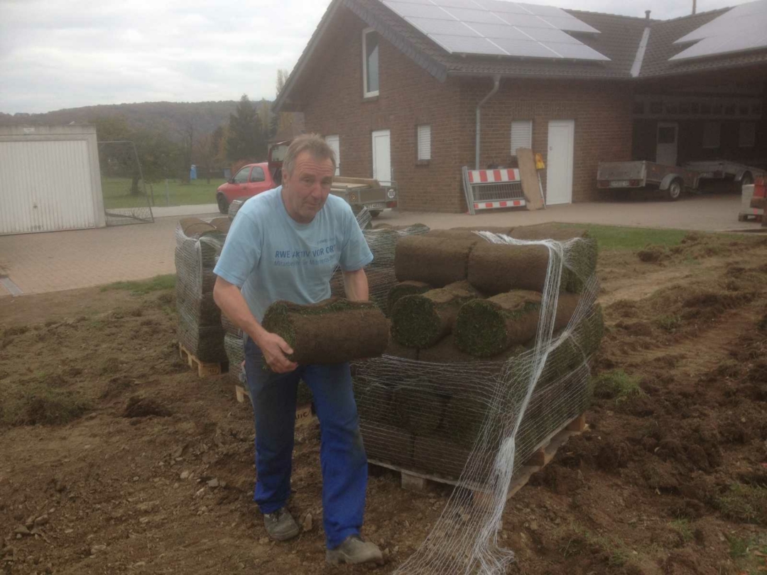 "Rollrasen verlegen". Für die ersten Leib- und Magenspeisen sorgt im