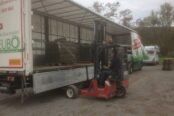 Rasentragschicht wird angeliefert. Allerdings fährt der LKW sich auf dem