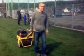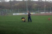 24.07.2015: Einmessen der Spielfeldfläche und Anzeichnen der Verrohrung für die Bewässerungsanlage