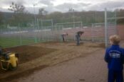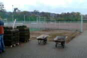 Kleinspielfeld wird der Boden planiert. Auch hier wird Rollrasen gelegt.