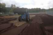10.10.2015: Viele Kubikmeter Rasentragschicht werden verteilt.