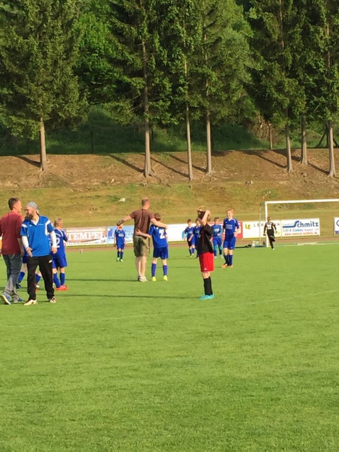 Vor dem letzten Spieltag waren also beide Mannschaften Punktgleich, wobei Adenau ein Spiel weniger aufzuweisen hatte. Am 24.Mai 2017 musste die E-Jugend des SCB in Adenau bei besten Witterungs- und Platzverhältnissen antreten. Man merkte den Jungs deutlich an, dass sie „heiß“ waren sich hier die Tabellenführung zu erobern. Nach nur einer gespielten Minute sah man sich allerdings von diesem Ziel bereits entfernt, als Adenau das 1:0 schoss. Die Mannschaft ließ sich von diesem Nackenschlag aber nicht beeindrucken und zeigte ihre Stärke. Es dauerte nur einen kurzen Moment und man erzielte den 1:1 Ausgleichstreffer. Danach ging es Schlag auf Schlag. Durch eine starke Verteidigungsleistung und gute Chancenausbeute führte der SCB zur Halbzeit bereits mit 1:3 Toren.