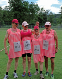 Bereits am frühen Samstagmorgen ging es weiter. Das Zelt wurde für die große „Bad Bodendorfer Stääne-Nacht“ hergerichtet. Selbst die an diesem Abend auftretende Band „Klüngelköpp“ zeigte sich angetan von der tollen Präsentation des SCB. Ein Bild, das man schöner nicht hätte malen können. Aber das war nicht alles, was der SCB an diesem Tage zu bieten hatte. Unter der Leitung von Björn Fiege wurde der legendäre Strandstaffellauf, in leicht modifizierter Form, wieder aufleben lassen. Nicht der Lauf stand im Vordergrund, sondern Spaß und Freude sowie die schrillsten Kostüme.