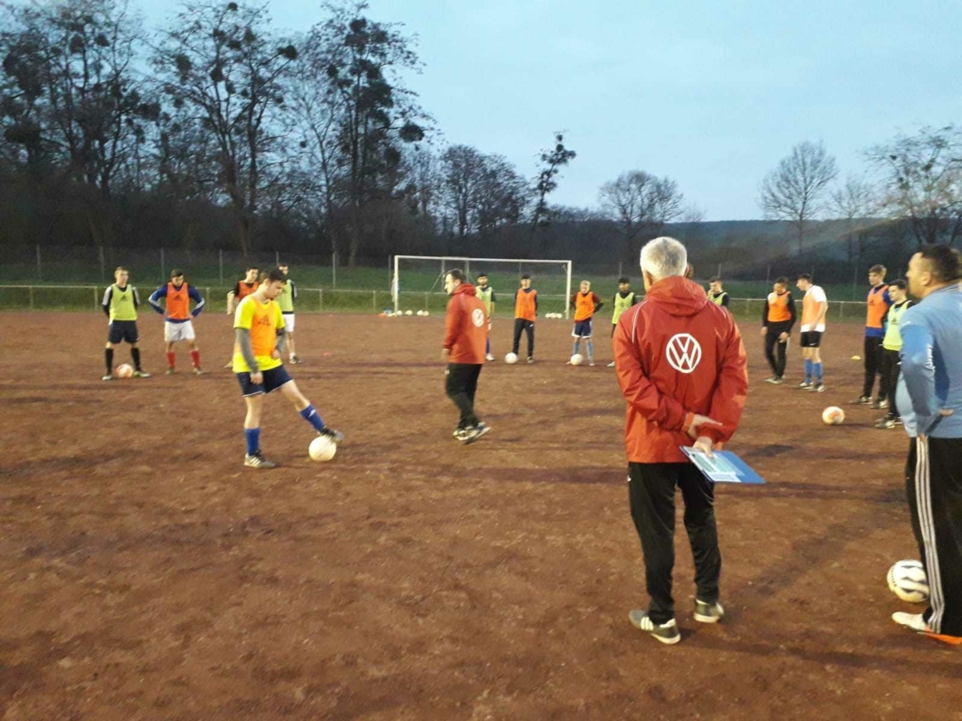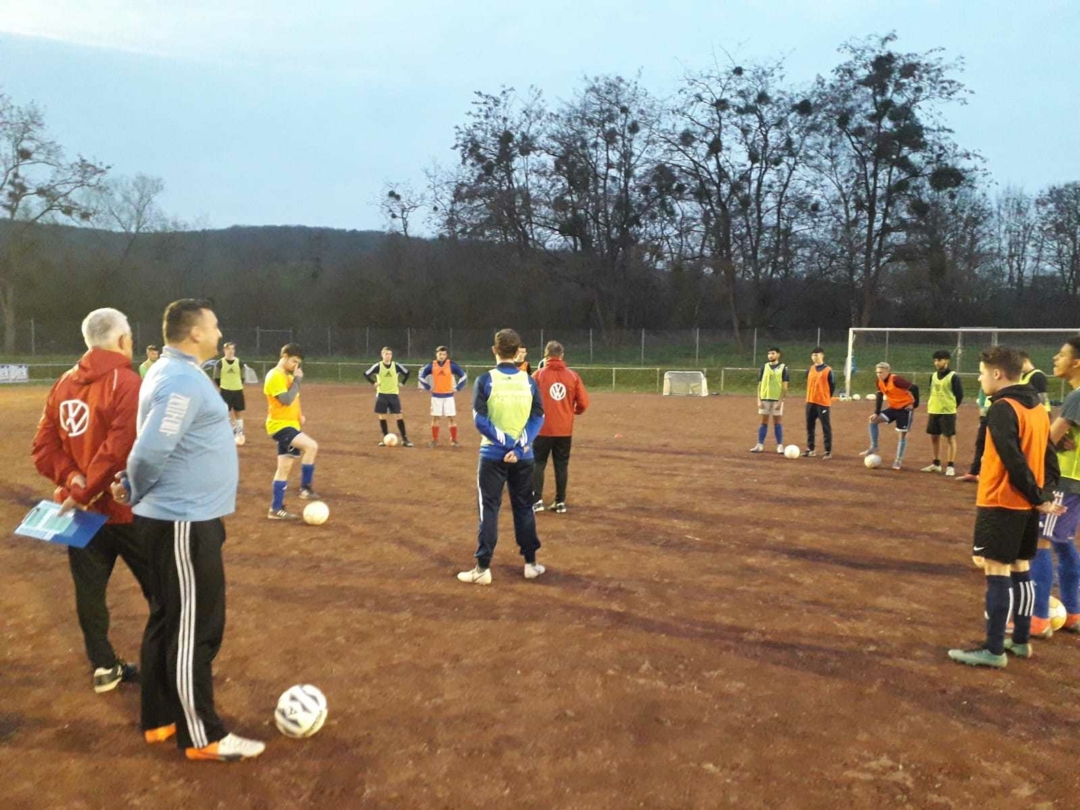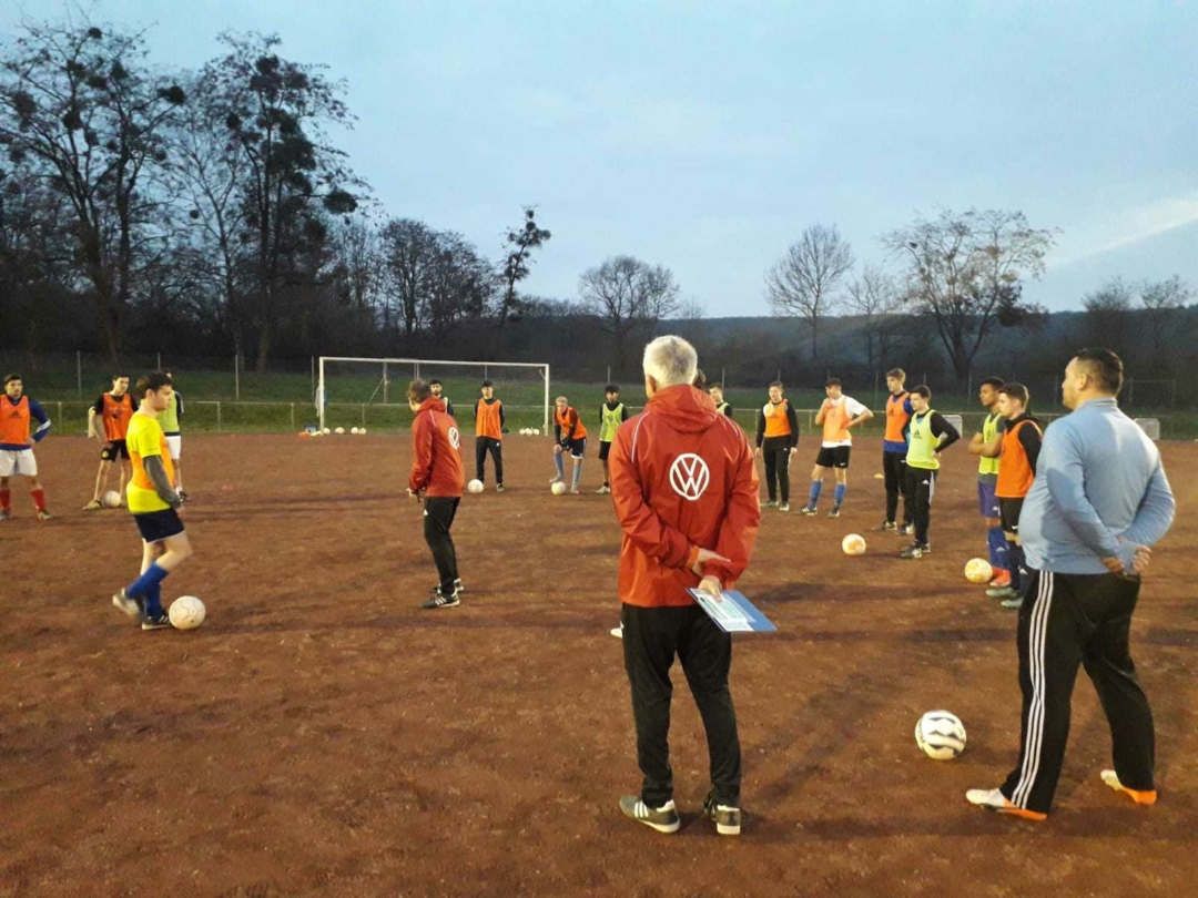 BAD BODENDORF. Am Donnerstag, 28. März 2019 konnten sich die Trainer der A1- und A2-Junioren eigentlich getrost zurücklehnen, denn am Abend waren zwar 21 Spieler beim Training, aber trainiert wurden sie bei dieser Trainingseinheit vom DFB. Lars Lambrecht und Burghard Lau, die eigens im neuen Transporterbus des neuen Hauptsponsors des DFB angereist waren, wollten mit den Jugendlichen eine spezielle Trainingseinheit absolvieren.