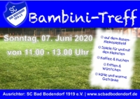 Das Sportwochenende beim SCB endet am Sonntag, 07. Juni 2020 mit dem "Bambini-Treff". Die "Kleinsten" werden dann ab 11.00 Uhr auf dem Rasenkleinspielfeld der runden Kugel hinterher laufen und für jede Menge Spaß und Unterhaltung sorgen.