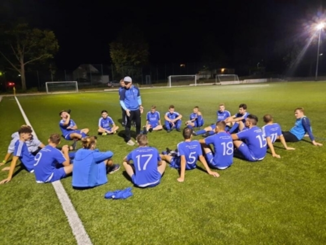 Gegner waren die A-Junioren der JSG Rheindörfer Urmitz und diese Mannschaft, die in der Leistungsklasse Koblenz/Rhein-Lahn den dritten Platz belegt, übernahm zu Beginn des Flutlichtspieles direkt das Kommando und brachten unsere Elf mehrmals in arge Verlegenheit. Doch unser zuverlässiger und auch technisch versierter Keeper Felix Güttes bereinigte mehrere brenzlige Situationen. Mit einer unserer ersten guten Aktionen wusste unser robuster Innenverteidiger Alexander Tietz eine Unsicherheit des gegnerischen Torwarts nach einen perfekt hereingebrachten Eckball zu nutzen und schob den Ball aus kurzer Entfernung in die Maschen. Dadurch wurden unsere Spieler in der Vorwärtsbewegung sicherer und Mittelstürmer Len Speekenbrink und Mittelfeldmotor Max Palm erhöhten mit ihren Toren auf 3:0. Wer gedacht hatte, das Ding sei gegessen wurde in der 47. Spielminute durch den 1:3 Anschlusstreffer eines Besseren belehrt. Doch toll wie die Jungs die Dranperiode des Gegners wegsteckten und zwischen der 55. und der 60. Spielminute wurde durch drei jeweils schön herausgespielte Tore durch die Spieler David Clemens, Max Palm und Mica Schneider der Endstand von 6:1 herbeigeführt. Fast wäre durch den technisch und läuferisch hervorragenden Aussenspieler Manuel Baltes noch das 7:1 erzielt worden, doch der Torhüter der zu keinem Zeitpunkt aufsteckenden Rheindörfler wehrte die gekonnte Einzelaktion im letzten Augenblick ab. Fazit des Saisonstarts: Zwei gute Leistungen einer austrainierten Fussballmannschaft, die sich über die 180 Spielminuten auch nach den Ein- und Auswechselungen als eine geschlossene Einheit präsentierte. Naturgemäß können noch gewisse Dinge, wie z.B. Passsicherheit, Stellungsspiel und taktisches Verhalten verbessert werden aber diese Dinge gehören zum Reifeprozess, den die jungen Spieler naturgemäß in der A-Jugend durchlaufen werden. Bleibt die Mannschaft bei ihrem Trainingsfleiß, werden wir noch sehr viel Freude an den Nachwuchskickern haben.