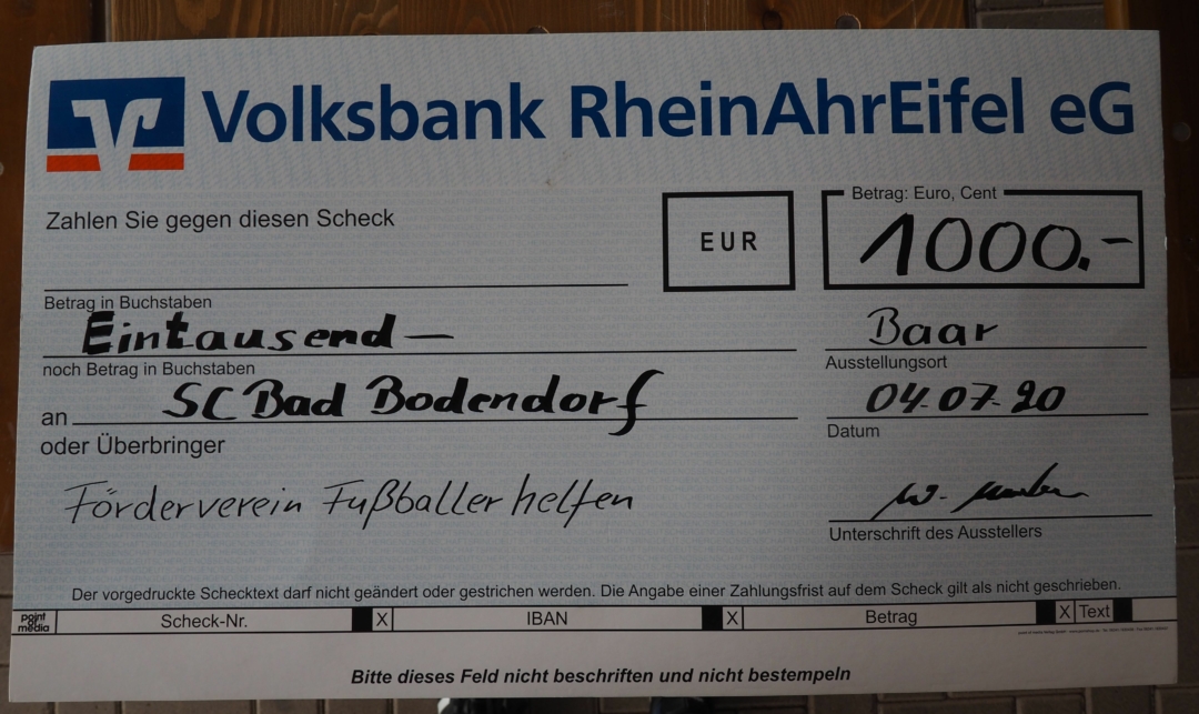 Im Gegenzug zu der großzügigen finanziellen Unterstützung trat der SC Bad Bodendorf dem Förderverein bei und wird nunmehr als 103. Mitglied geführt. Einige Wochen zuvor hatte Hamid Rostamzada, langjähriger Schiedsrichter und Integrationsbeauftragter im Fußballkreis Rhein/Ahr, seinen Aufnahmeantrag ausgefüllt. Er geht somit als das 100. Mitglied in die Annalen ein. Ihm folgten dann noch die Vereine SC Rhenania Gönnersdorf und VfB Lantershofen. „Mit dem Überschreiten der Hundertermarke haben wir ein lange gehegtes Ziel erreicht. Jetzt habe ich nur noch den Wunsch, dass irgendwann wirklich alle Vereine auf der Mitgliederliste vertreten sind“, so Merten. hjs