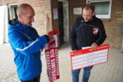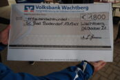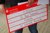 Am Sonntag (24. Oktober) war der SCB dann noch bei der SG Bad Breisig/Inter Sinzig eingeladen. Roman Förster und Guido Ernst überreichten nicht nur dem SC Bad Bodendorf einen Scheck in Höhe von 1.000 Euro, sondern auch die ebenfalls von der Flut betroffenen Vereine der SG Dernau/Mayschoss, der SG Ahrtal und dem ESV Kreuzberg wurden mit einem Scheck bedacht.