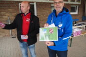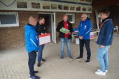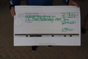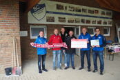 Als nächstes kam eine Abordnung des SV Eintracht Remsede aus der Nähe von Osnabrück zur Scheckübergabe nach Bad Bodendorf. Martin Schönebeck (1. Vorsitzender) und Ingo Puttik (2. Vorsitzender) hatten in ihrem Verein gesammelt und überreichten jetzt einen Betrag in Höhe von 1.300 Euro an den Geschäftsführenden Vorstand des SCB. Aber nicht nur das, sie übernahmen auch noch eine Platzpatenschaft beim SCB in Höhe von 200 Euro. Und als wäre das nicht schon genug, überreichte Martin Schönebeck auch noch eine Privatspende seiner Familie in Höhe von 150 Euro.