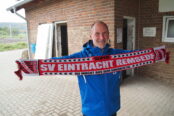 Extra aus Jena angereist, mit einer Spende im Gepäck, war Konstantin Freuer vom SV Lobeda 77 e.V. um sich vor Ort ein Bild zu machen, wie es momentan am Vereinsgelände des SCB aussieht. Foto: Mike Beitzel