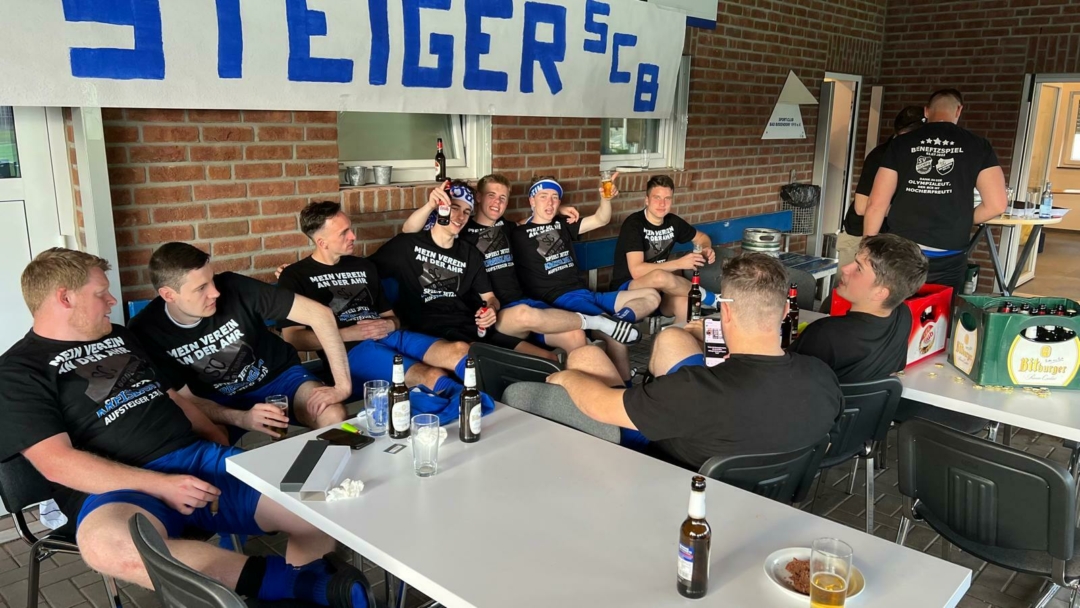 Nach weiteren Ehrungen rund um den Aufstieg wurde weiter gefeiert. Einige Spieler und Vereinsmitglieder genossen diesen besonderen Moment bis tief in die Nacht.