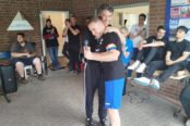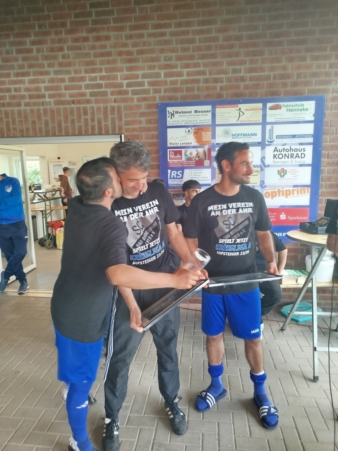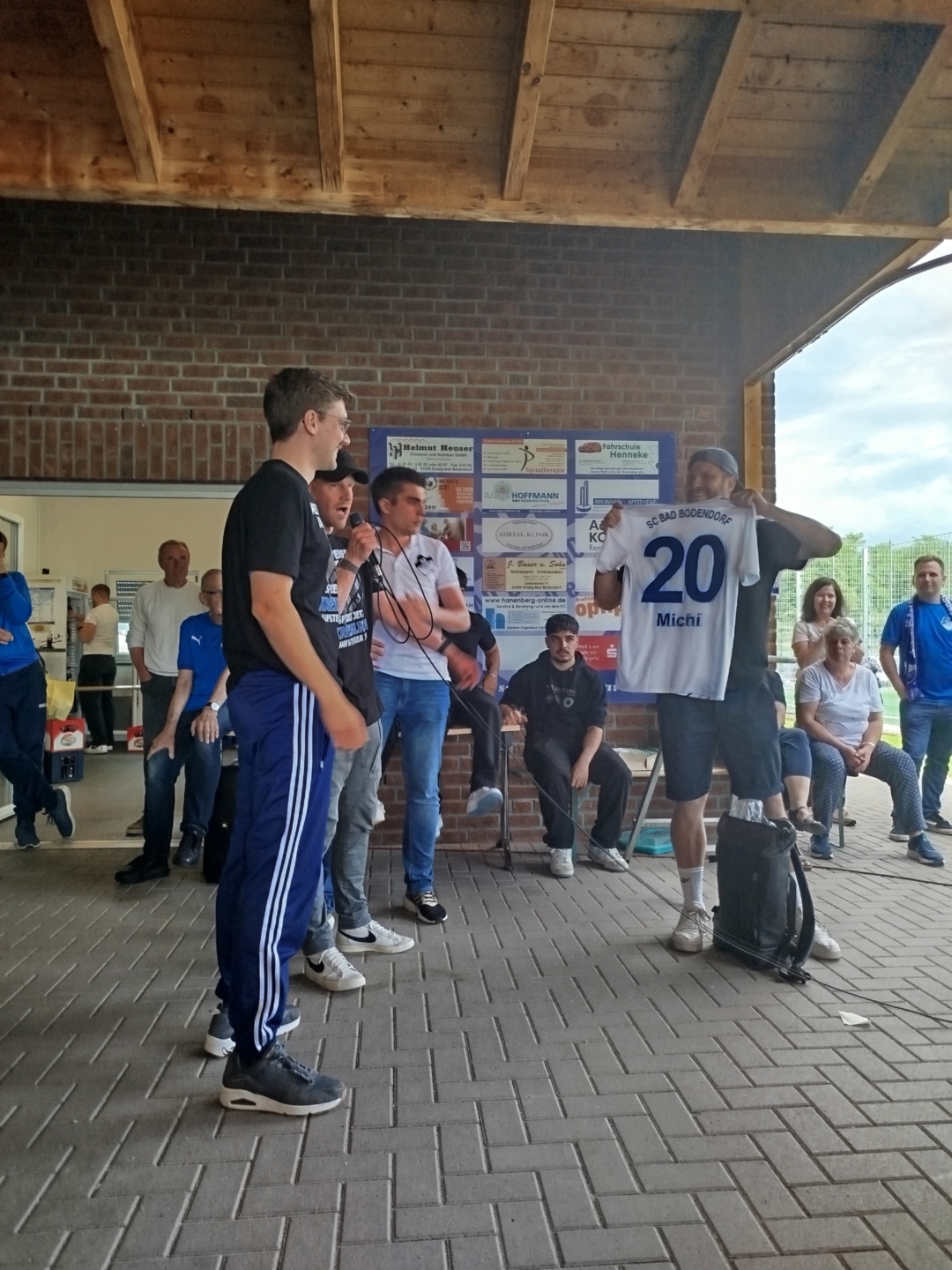 Als sich die Gemüter etwas beruhigt hatten, wurde in großer Runde – zusammen mit Fans, Freunden und Sponsoren des Vereins – drei verdiente Spieler in den Ruhestand verabschiedet: David Langlitz (1. Mannschaft), Nicolai Schmitz und Michael Schüller (beide 2. Mannschaft). Alle drei zeichneten sich durch große Vereinstreue aus und werden nach der aktiven „Fußballerkarriere“ dem Verein sicherlich erhalten bleiben, schließlich sind sie jetzt schon alle im Vorstand in verschiedenen Posten aktiv.
