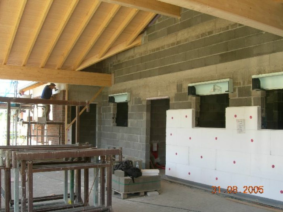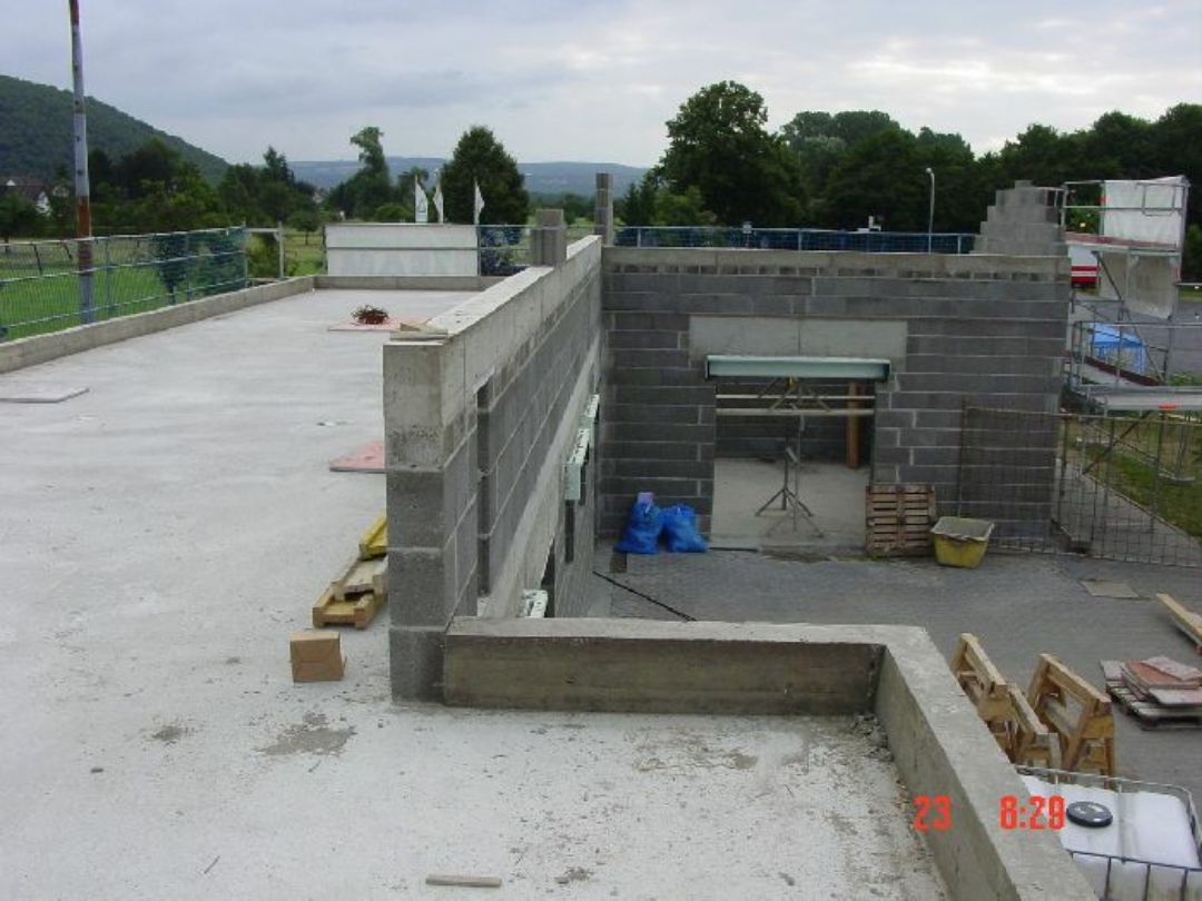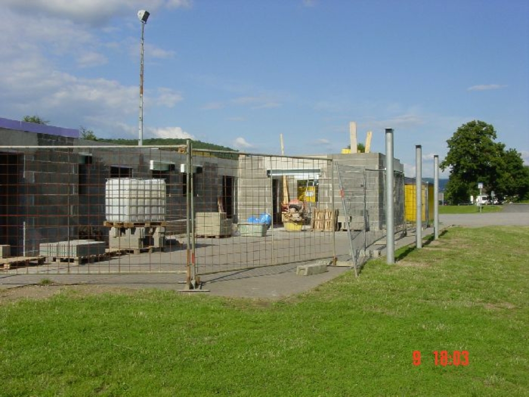 Da die Brandursache durch einen Sachverständigen eindeutig bestimmt werden konnte, war die Versicherungsfrage schnell geklärt. Die zuständige Provinzial-Versicherung mit ihrem Geschäftsführer Werner Klapperich einigte sich mit der Stadt Sinzig als Eigentümerin auf einen Neubau des Vereinsgebäudes. Die Stadt mit Bürgermeister Wolfgang Kroeger handelte hier sehr umsichtig. Von der Provinzial wurde Herr Blokesch als Architekt bestellt. Martin Unkelbach übernahm von Vereinsseite die Bauaufsicht.
