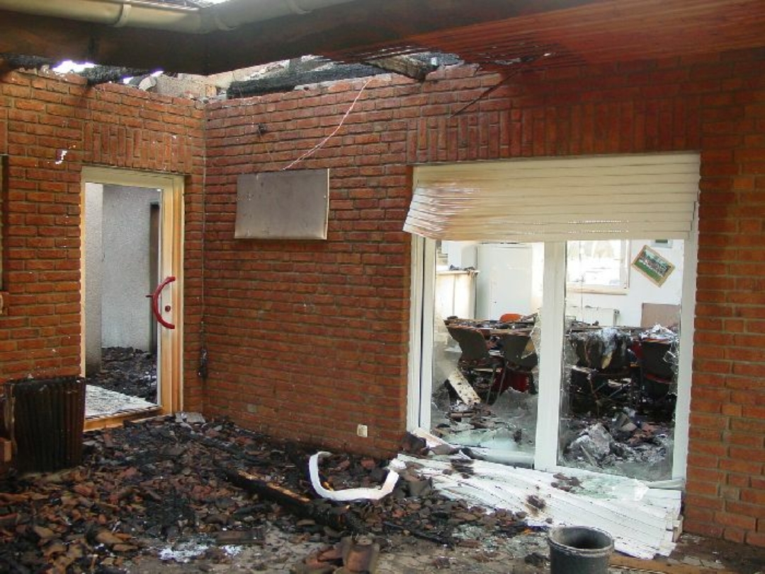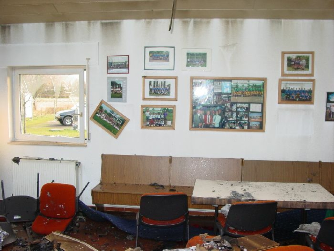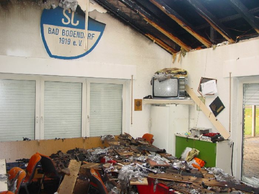Am 14.01.2005 zerstörte ein verheerender Brand das gesamte Vereinsheim. Trotz eines Großeinsatzes der Feuerwehr brannte das Gebäude bis auf die Grundmauern nieder. Der Verein stand vor den Trümmern seiner Existenz. Das gesamte Dorf, der komplette SCB waren geschockt. Die Brandursache konnte ermittelt werden: Es war ein Defekt in der Heizungsanlage.